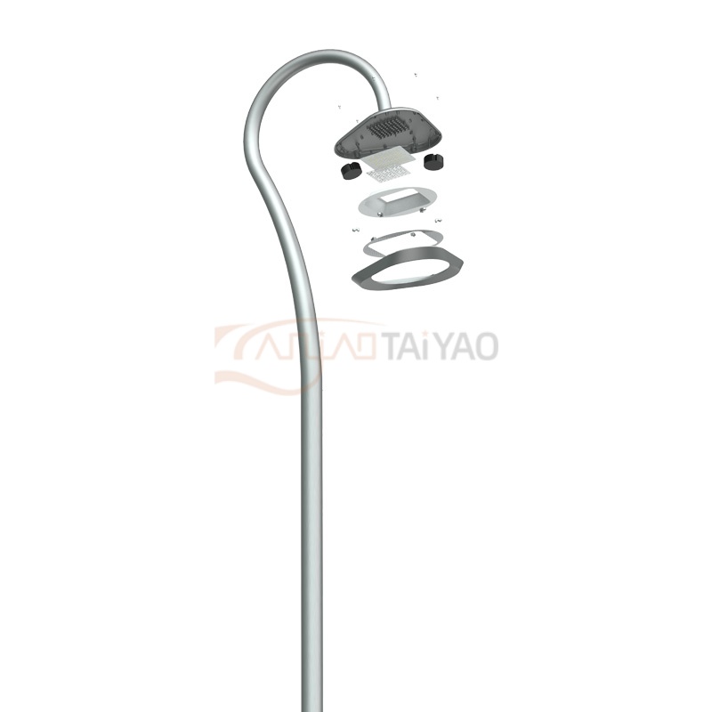Le poteau de lampe et les vis de fondation utilisent principalement de l'acier Q235, et Q355\Q390 peuvent être personnalisés. La hauteur du poteau varie de 3m à 12m. Des conceptions de bras de support différentes sont disponibles (simple bras ou double bras), couvrant les besoins d'éclairage routier des jardins aux routes rurales, des routes principales urbaines et des autoroutes urbaines. Le poteau de lampe et le béton de fondation résistent à une tempête de niveau 13 sans déformation ni dommage.